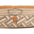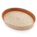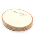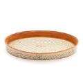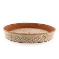 Ovalt fad af stentøj dekoreret i rødbrune farver med fletornamentik. Sign. Knud Kristensen, 2016. H. 6,5. L. 55. B. 44.