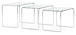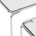 Set of three nesting tables with chromed steel frame. Glass top. H. 46/43/40 cm. L. 64/61/58 cm. W. 40 cm. (3)