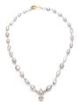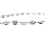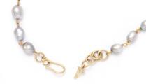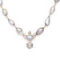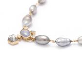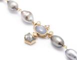 Perle-, diamant- og stjernesafirhalskæde af 18 kt. guld prydet med talrige Tahiti keshiperler og vedhæng prydet med rosenslebet-, fancy-cut og brillantslebne diamanter på i alt ca. 1.03 ct. samt cabochonslebet lyseblå stjernesafir på ca. 1.93 ct. Perlediam. ca. 6–7 mm. L. 38 cm.
