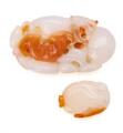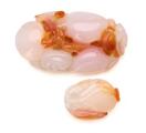 Two Chinese carnelian agate pendants, one carved with bats and peaches L. 5 cm. 20th century. (2)