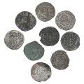 Frederik III, collection of 1 skillings, in total 9 pcs incl. skilling 1648, H 123, Sieg 4.2, skilling 1652, H 131, Sieg 8.1, bøjet, sjælden, skilling 1655, H 131, Sieg 9.2, sjælden, skilling 1667, H 141A, Sieg 12.1