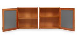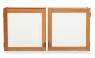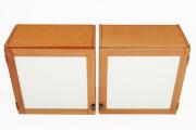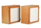 A pair of Oregon pine and white laminate cabinets for wall mounting, brass handles. 1970–80s. H. 61. W. 60. D. 34 cm. (2)