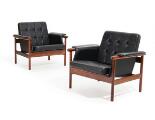 “Wiki”. Et par lænestole med stel af palisander, betrukket med sort skind. Udført hos Koefoed's Møbelfabrik, Hornslet. (2)
