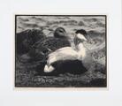Eider birds. Signed Johannes Larsen. Woodcut in passepartout. Visible size 39×49 cm. Unframed.