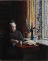 “Kunstnerindens Moder”. The artist's mother knitting. Signed with monogram and dated 1911. Oil on canvas. 43×34.5 cm.