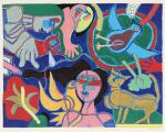 “Enchantement du printemps”. Signeret Corneille 88, Epreuve d'artiste. Litografi i farver. Lysmål 80×98 cm.