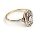 Art Deco diamantring af 14 kt. guld og platin prydet med brillant- og rosenslebne diamanter. Vægt ca. 1,8 g. B. 12,5 mm. Str. 54,5.