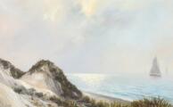 Coast scenery with ships at the sea. Indistinctly signed, 18. Oil on canvas. 50×80 cm.