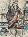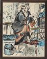 Interiør med en kvinde. Sign. Estvad, 33. Akvarel på papir. Lysmål 48×37.