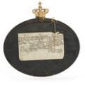 A note on the back informs, which miniature portraits of princely persons previously hung on the frame. They all seem to be related to Duke Wilhelm of Schleswig-Holstein-Sonderburg-Beck (1785–1831), who in 1825 was appointed to Duke Wilhelm of Schleswig-Holstein-Sonderburg-Glücksborg.