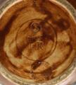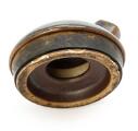 Normal patina due to age and use, including scratches and marks. The lid's inner rim with some chips.