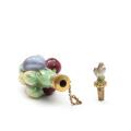 A soft-paste porcelain scent bottle modeled as a fruit cluster, the stopper shaped as a bird, gilded mounting. St. James (Charles Gouyn Factory)? 18th century. L. 9.5 cm.