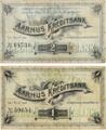 Aarhus Kreditbank, 2. udg. med trykkedsted, 1 og 2 kroner, Sieg 139–140, Pick S134-S135. (2)
