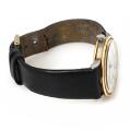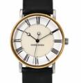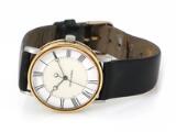 Herrearmbåndsur af stål. Design 365. Mekanisk værk med automatisk optræk. Hvid skive med sorte indeks og visere. Sort rem med C-spænde af guldbelagt stål. Urets diameter 34 mm. 2000'erne.