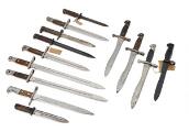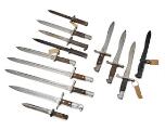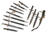 A collection of various bayonets consisting of a Swiss M/1918, a Swedish M/1896, an Italian M/1938, a Czech M/1933? with the muzzle ring removed, a combat knife made by a modified do with approx. 16.8 cm. long blade, 2 Spanish M/1893 in leather scabbards, 2 Spanish M/1913 in leather scabbards, 3 Spanish M/1941 - one same numbered and a Spanish M/1964.