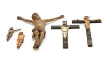 A group of five 18th/19th century crucifixes/the crucified Christ, fragmented. H. 9–27 cm. (5)