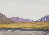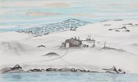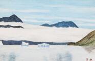 Tre kompositioner i form af grønlandske landskaber. Sign. hhv. J.D. samt Jakob Danielsen, ene yderligere 11. Februar 1925, Godshavn. Vandfarve og tusch på papir. Bladstørrelse 9×14, 17,5×24,5 og 19×31,5. Uindrammet. (3)