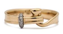 “Torun” diamantring af 18 kt. rosaguld prydet med talrige brillantslebne diamanter på i alt ca. 0.06 ct. Dessin 1204A. Vægt ca. 3,5 g. B. ca. 6 mm. Str. 56. Georg Jensen efter 1945.