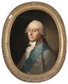 Portræt af statsmanden A.P. Bernstorff (1735–1797) i grå dragt bærende elefantordenens blå bånd og stjerne. Usigneret. Olie på lærred. 73×56 cm. Oval.