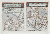 “Danorvm Marchiae Sev Cimbrici” and “Regnvm Continentis Ivitiae Dvcatvm”. Map of Denmark and Schleswig Holstein. 1578. Handcoloured etchings. Sheet size 38.5×56 cm. Unframed.