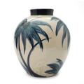 An earthenware floor vase, decorated with light glaze and flowers in blue, green and brown colours. Signed HAK, Danmark. Manufactured by Kähler. H. 37 cm.