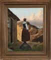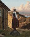 A young girl looking for a boat to avail. Signed and dated Chr. Dalsgaard 1859. Oil on canvas. 44.5×37 cm.
