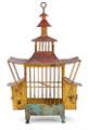 A painted metal birdcage, pagoda-shaped, approx. 1900. H. 61 cm.