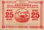 Greenland, “Styrelsen af kolonierne i Grønland”, 25 øre nd (1913), nr. 28032, Daugaard Jensen / Munch, Sieg 58A, Pick 11