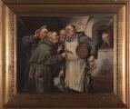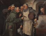 Monks talking. Signed Simony Jensen. Oil on canvas. 40×50 cm.