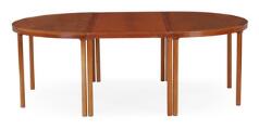 Bord af mahogni i tre dele, heraf to D-ender og et rektangulært bord. Udført og mærket hos Interna. D-ender: H. 65,5. B. 130. D. 65. Rektangulær bord: H. 65,5. L. 130. B. 65. (3)