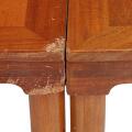 Fremstår med alders- og brugsslitage, herunder ridser, mærker og hak. Større afslag ved et ben. Afslået stykke medfølger.