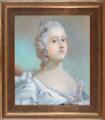 Portrait of Queen Louise of Denmark (1724–1751) wearing a ermine robe. Unsigned. Pastel on paper. Visible size 50×42 cm.