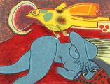 Woman and bird. Signed Corneille 84, 5/125. Lithograph in colours. Visible size 49×64 cm.