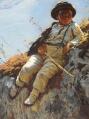 A young shepherd resting. Signed Emil Lund. Oil on canvas. 43×32 cm.