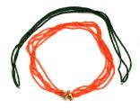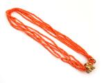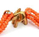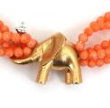 Diamantlås af 14 kt. guld og hvidguld i form af elefant prydet med brillantslebet diamant på ca. 0.10 ct. Tre-radet smaragdhalskæde prydet med talrige facetterede smaragd perler og fem-radet koralhalskæde polerede koral perler medfølger. Lås ca. 2,5×3 cm. L. 49,5–51 cm. (3)