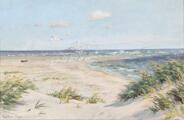 A view from Skagen with seagulls on the beach. Signed Emil Lund Skagen. Olie på lærred. 37×55,5 cm.