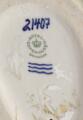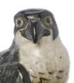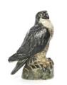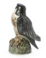 Figur af stentøj modelleret i form af en falk. Dekoreret med blåsort, grå, grøn og blå glasur. Sign. monogram, 21407. Kgl. P. H. 27.