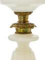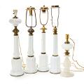 Fire lamper af oplineglas, heraf tre “Heiberg”-model, samt en lampe af matteret glas. 19.-20. årh. H. ekskl. montering 39–47 cm. (5)