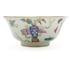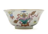 A Chinese gilt trimmed enamelled porcelain bowl painted with precious things. Daoguang 1820–1850 seal mark in iron-red and of the period. H. 7.5 cm Diam. 17 cm.