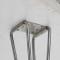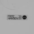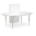 “Superellipse”. Dining table with steel span legs. White laminate top with aluminium edge, extension and two extra leaves. Model B413. Manufactured and marked by Fritz Hansen, 1987. H. 70 cm. L. 180/300 cm. B. 120 cm. (3)