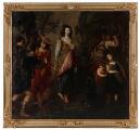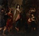 A huting scene. Unsigned. Oil on canvas. 130×142 cm.