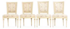 A set of four nearly identical late Gustavian chairs of later painted and gilded wood. Sweden, 19th century. (4)