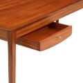 Freestanding mahogany desk, mounted on tapering legs. Front with two drawers, brass fittings. Designed 1959. Made 1960s by cabinetmaker A.J. Iversen. H. 74 cm. W. 92.5 cm. L. 185 cm.