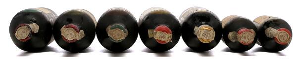 2 bts. Château Beauséjour, Puisseguin-Saint-Émilion Grand Cru 1959 B (ts/us). 1 bt. Château Brane Cantenac, Margaux. 2. Cru Classé 1952 C/D (ms/mls). 1 bt. Château Kirwan, Margaux. 3. Cru Classé 1966 B (ts/us). 1 bt. Chateau D'Issan, Margaux. 3. Cru Classé 1969 A/B (ts). 2 bts. ½. Château Chasse-Spleen, Moulis-En-Medoc 1949 C (ms). Total 7 bts.