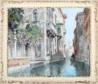 Canal scene from Venice. Signed Padovani. Oil on canvas. 47×57 cm.