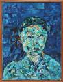 “Elegisk mand”, 1962. Signeret på bagsiden Freddie Dybris, 62. Olie på lærred. 40×30 cm.