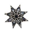 Safir- og diamantbroche af sølv og 12 kt. rosaguld i form af stjerne prydet med talrige facetslebne safirer og rosenslebne diamanter. Vægt ca. 12 g. Diam. 3,6 cm.