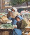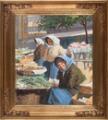 Market scenery from Højbro Plads in Copenhagen. Signed Bjulf. Oil on canvas. 46×40 cm.
