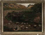 Study of a creek. Indistinct signature. Verso inscribed Carl Scheuermann. Oil on cardboard. Visible size 17.5×23.5 cm.