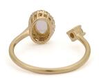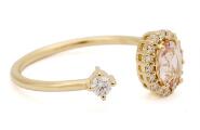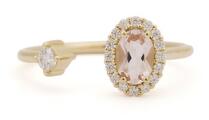 A morganite and diamond ring set with an oval-cut morganite weighing app. 0.34 ct. and numerous brilliant-cut diamonds weighing a total of app. 0.17 ct., mounted in 18k gold. Weight app. 1.8 g. Size 54.